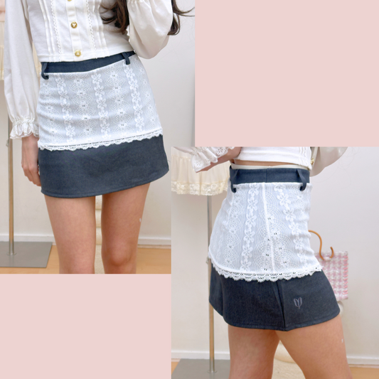 Grey Lace Apron Mini Skirt ♡₊˚
