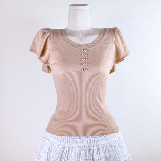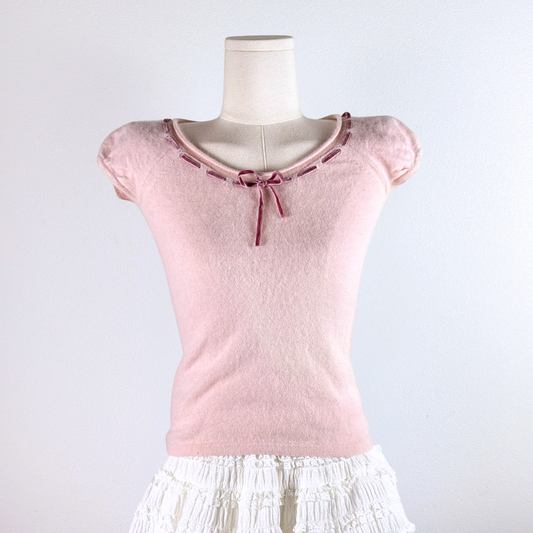 Blush Ribbon Knit Top ♡₊˚ஓ