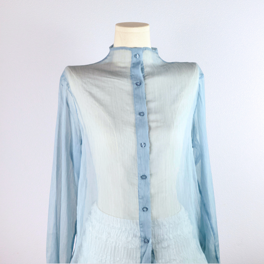 Sheer Ice Blue Button-Up Blouse