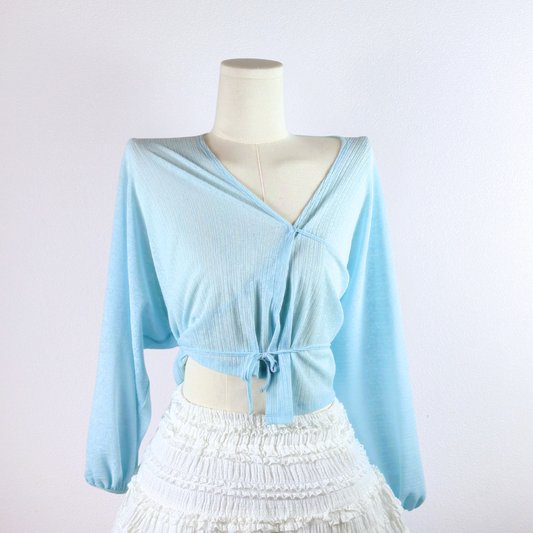Sky Blue Wrap-Front Knit Blouse