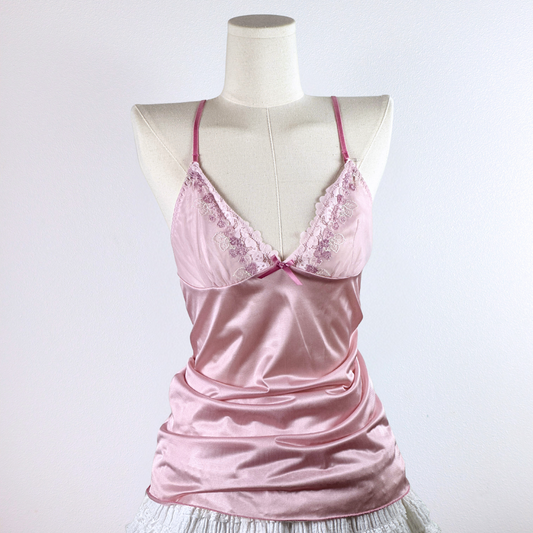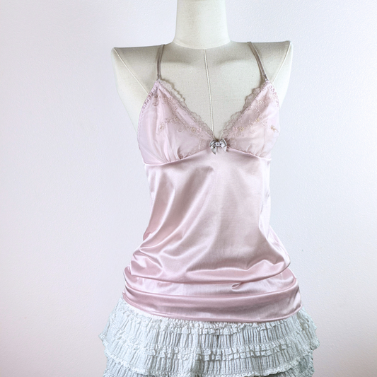 Blush Pink Satin Camisole with Embroidered Lace Cups