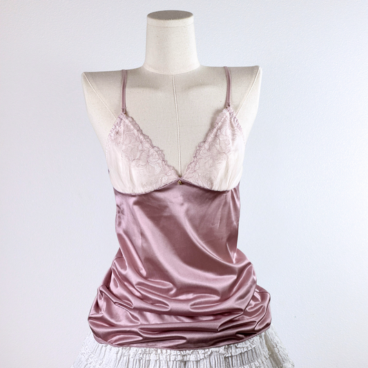 Lace Satin Camisole in Mauve and Cream